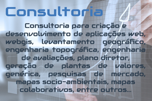 trabalhamos com projetos personalizados que se adaptam as necessidades do seu negócio, especializados no desenvolvimento de sistemas com conteúdo geográficos, sistemas online para coleta de informações, pesquisas e levantamentos, sistemas para fiscalização, acompanhamento de obras, intervenções, áreas de risco e de irregularidades, sistemas para cálculo de áreas, digitalização de documentos, utilização de equipamentos aéreos para geração de diversas comparações e muito mais, faça parte desse tempo, Dê um Up!